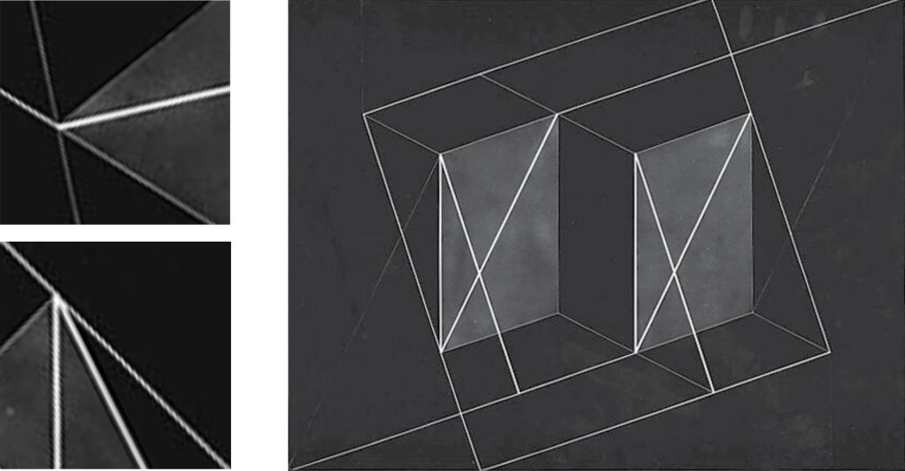 Left: 2 Square crops Right: Transformation of a Scheme No. 9, Josef Albers, 1950